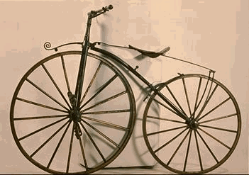 A francia Pierre Michaux 1861-ben alkotta meg a michauline-t, az olyan kerékpárt, aminek pedáljai az első keréken voltak. Ezzel már az egyensúlyozás is egyszerű volt, sőt, minél gyorsabban tekert az ember annál kevésbé veszíthette el az egyensúlyát. A gép kerekei kezdetben körülbelül egyformák (90 cm) voltak. A fára vasabroncsot húztak, hogy ne kopjon olyan gyorsan. A gyártás már `62-ben beindult, de az igazi őrület az 1867-es párizsi világkiállítás során robbant ki.